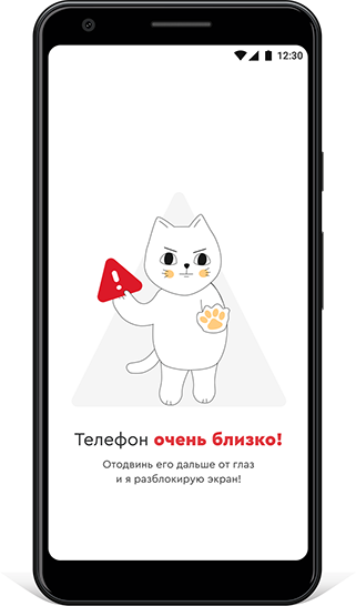 При близком приближении к глазам появляется предупреждение и приложение ждет, что человек удалит смартфон от глаз.