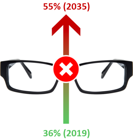 Если прогрессия сохранится, то к 2035 году больше половины людей во всем мире (55%) будут иметь слабое зрение.